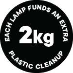 As well as using recycled materials in our products, we fund an extra cleanup of 2kg of plastic for each lamp sold.